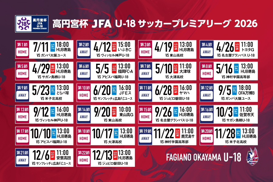 ファジアーノ岡山U-15まさだ コーチ就任のお知らせ