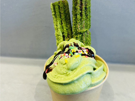 抹茶ソフトに抹茶チュロスを合わせた、抹茶好きにたまらないチュロサンデーです!