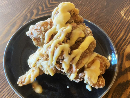 スイートチリとマヨネーズの相性抜群のソースをかけた大人気メニューです!