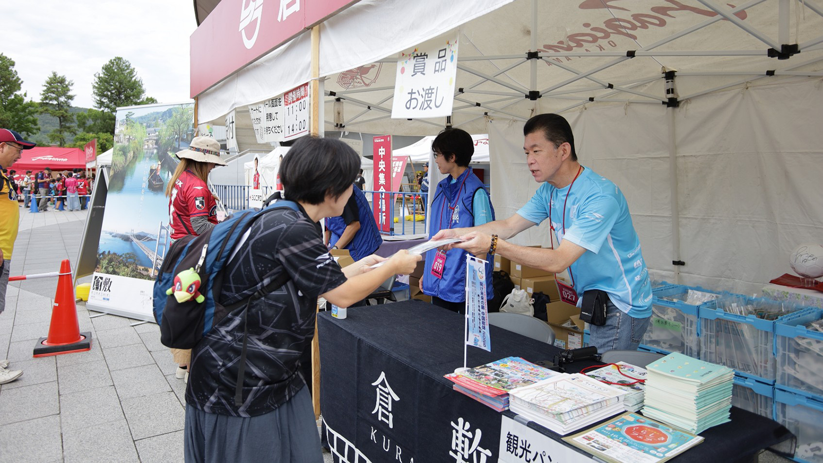 当日アンケートに回答いただいた方を対象とした抽選会を実施します。 選手サイン入りボールや選手サイン入り色紙、倉敷市の特産品であるマスキングテープや畳縁製品等が当たりますので奮ってご参加ください。 <抽選会景品> 1等 選手サイン入りボール(3名様) 2等 選手サイン入り色紙(10名様) 3等 マスクケース(20名様) 4等 マスキングテープ(100名様) 5等 畳縁コースター (150名様) 6等 畳縁キット(200名様) 7等 クリアファイル(めくりめくる)(360名様) ※先着順で景品がなくなり次第終了します ※16時より整理券を配布します。受け取った方はブース終了までにお戻りいただければ抽選会への参加が可能となります。