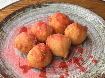 ラズベリーパウダー、ソースで甘酸っぱいもちもちとうふドーナツ!