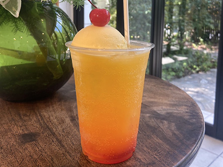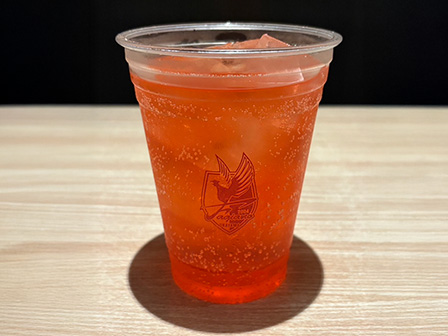 名古屋グランパスのチームカラーをイメージしたマンゴーとグレナデンを使ったクリームソーダ!