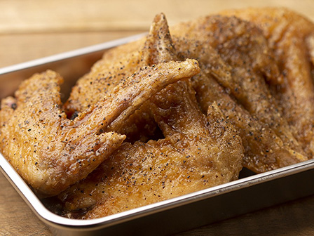 名古屋の名物の甘ダレと黒胡椒がきいた手羽先の唐揚げです!
