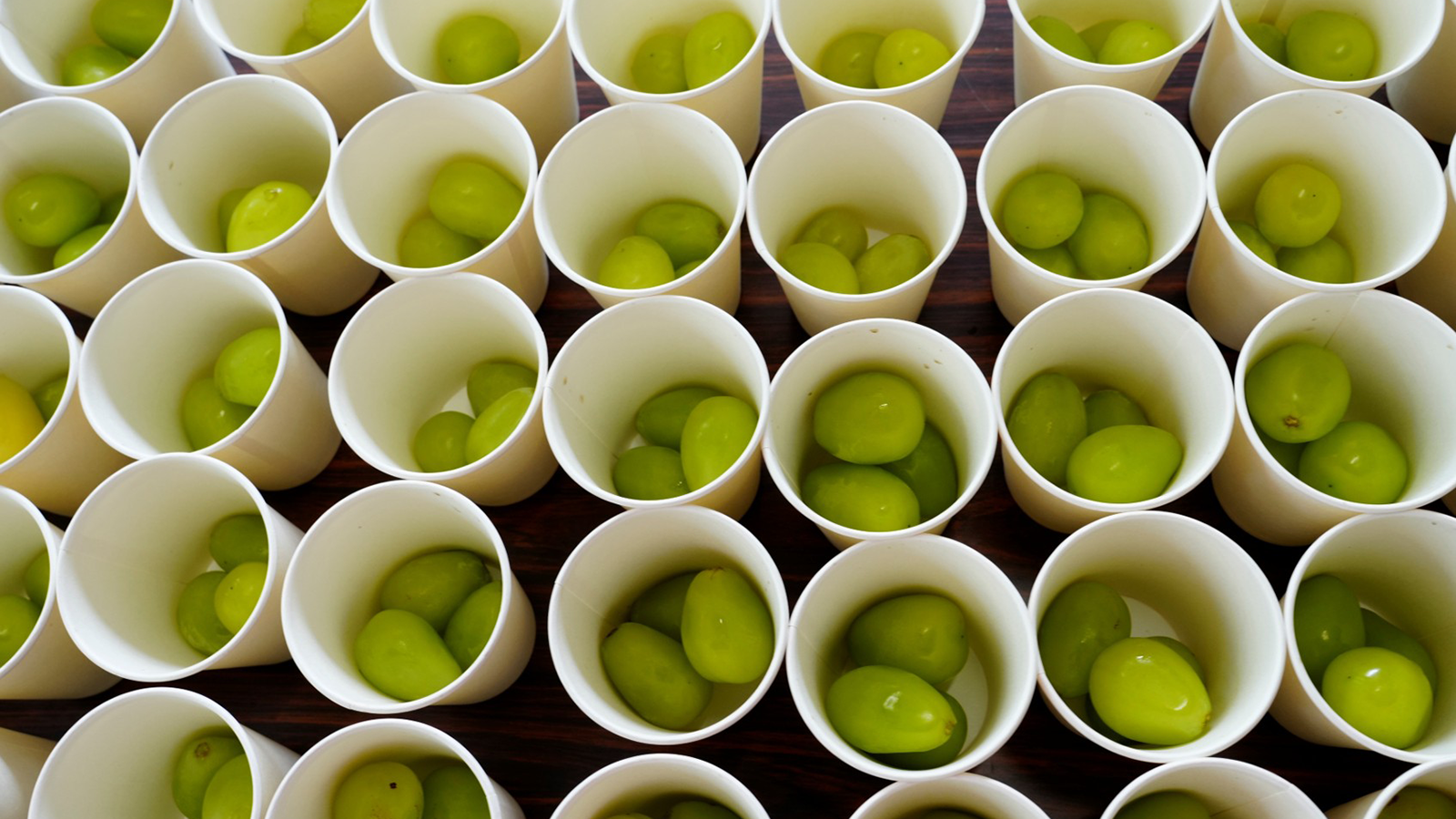 ビジターゲートから入場される名古屋グランパスサポーターの皆様(先着順)を対象に、倉敷市の特産品であるシャインマスカットをプレゼントします! ※先着順で物がなくなり次第終了します