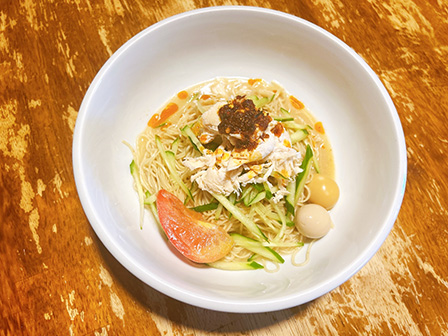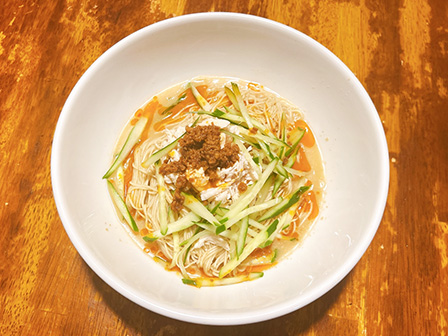 棒棒鶏が冷麺になって登場。冷たい麺にゴマの風味がよく合います!