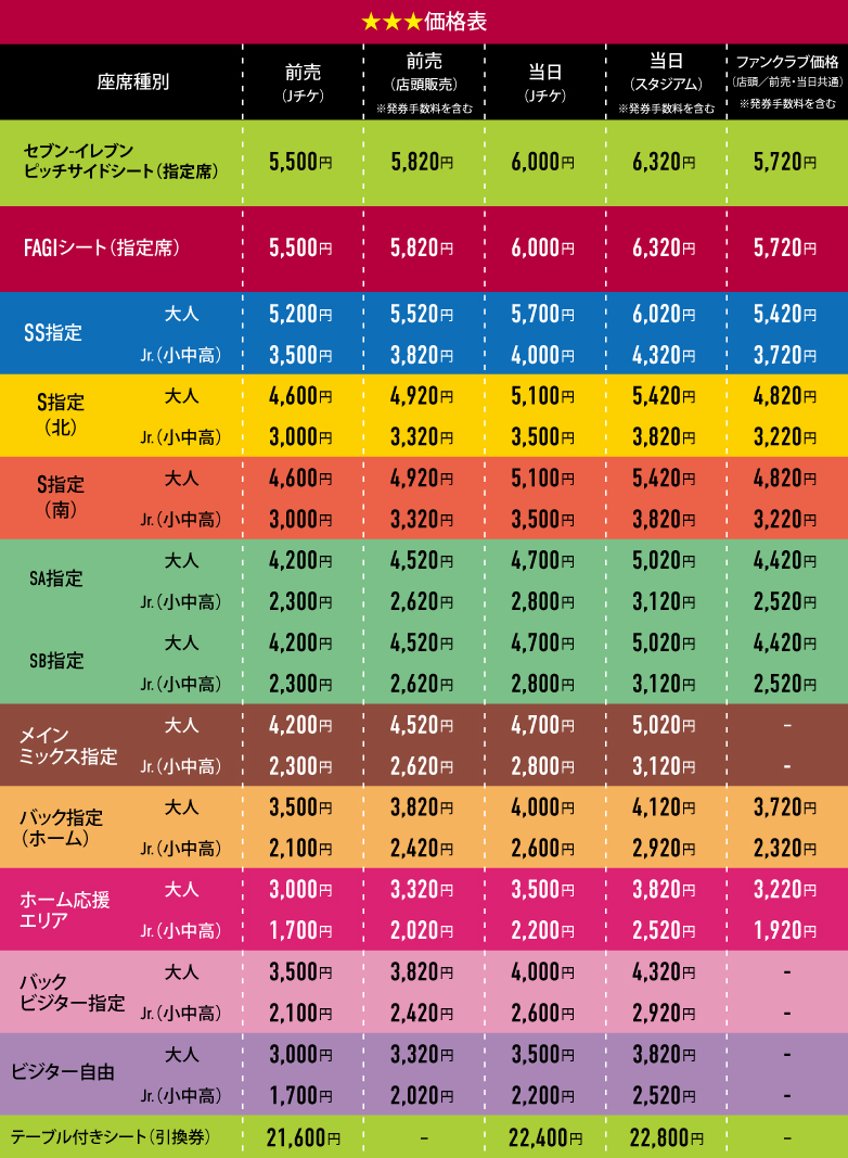 ■対象チケット席種 ・FAGIシート ・SS指定席(大人/ジュニア) ・S指定席(北)(大人/ジュニア) ・S指定席(南)(大人/ジュニア) ・SA指定席(大人/ジュニア) ・SB指定席(大人/ジュニア) ・メインミックス指定席(大人/ジュニア) ・ホーム応援エリア(大人/ジュニア/夢チケ) ・バック指定席(ホーム)(大人/ジュニア) ・ピッチサイドシート ・テーブル付きシート ・各種車いす席 ・カンコードリームシート ※ビジター自由席、バックビジター指定席、はお渡し対象外とさせていただきます ■配布数量:14,000枚