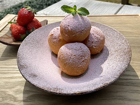 食べやすくカットしたファジチュロスです。シェアにもおすすめ! ※ファジチュロスの3/4をカット&カップで提供