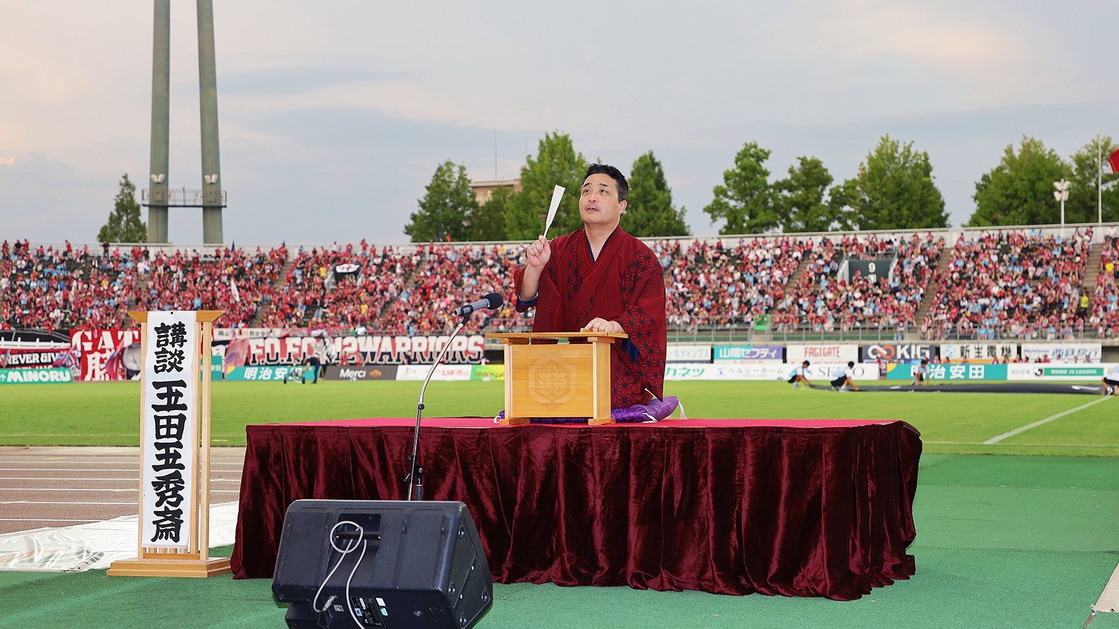今シーズンも講談師 玉田玉秀斎 様がJFE晴れの国スタジアムに登場! 8月17日柏戦にて披露予定だった、2025シーズンバージョンのオリジナル講談パフォーマンスをお楽しみに!