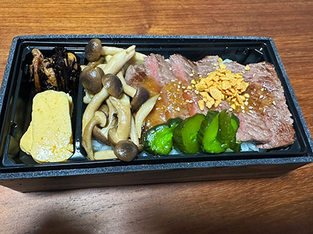 香ばしく焼き上げたステーキを豪快にのせた、秋限定のよくばり重!食欲の秋にぴったりの一品です!
