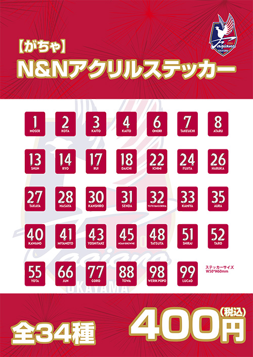 昨シーズンから新デザインを数種類追加! ファジアーノ岡山デザインのフェイスペイントを身につけて、より熱く盛り上がりましょう! 【参加費】100円/1枚 ※肌の弱い方やアレルギーのある方は参加をご遠慮ください。 ※在庫がなくなり次第終了いたします。
