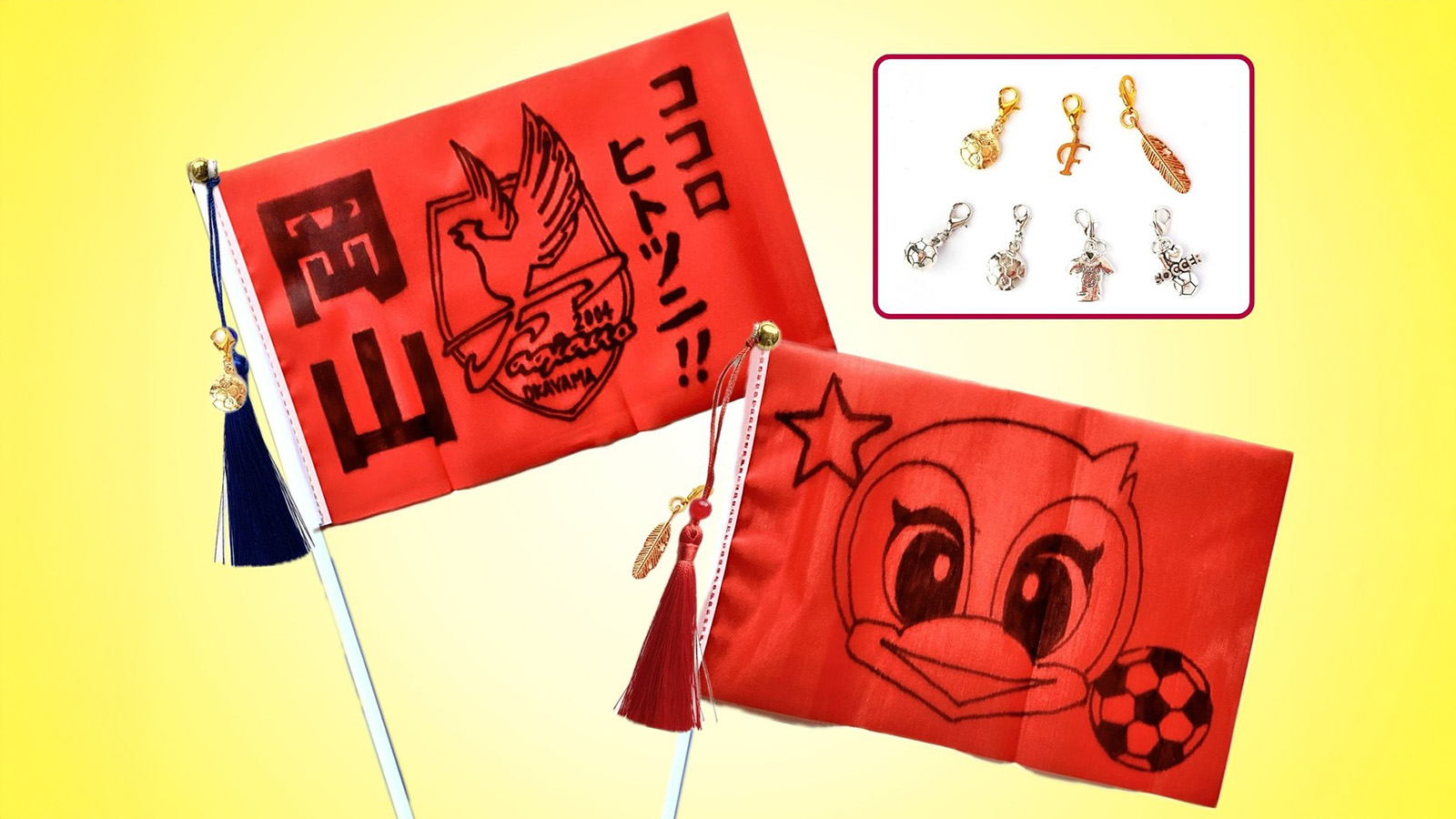 ミニフラッグに応援メッセージやファジ丸を自由に描きましょう。見本イラストもあるので、写すだけでかっこいいフラッグが完成します。 自分で作ったフラッグで選手にエールを届けましょう! 【参加費】ミニフラッグ本体 600円 ※オプションチャーム +300円