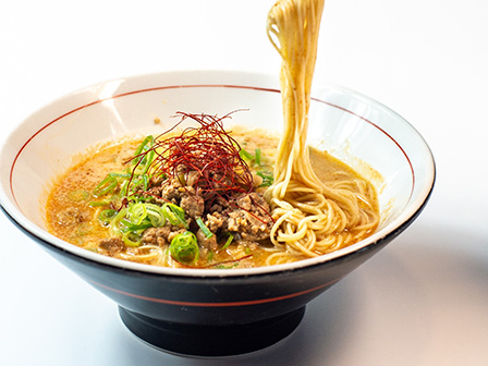 挽き肉のうま味とごまの香りにコクのあるスープが絡んだ極上の一杯です。辛くありません