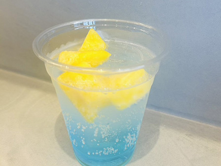 ラムネのやさしい甘さに、パインのトロピカルな風味。暑い日にぴったりの爽快ソーダ。