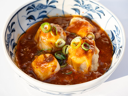 自慢の肉シウマイに麻婆がかかった一品です!