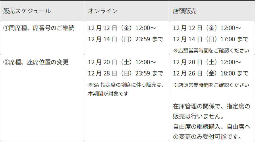 ※11月28日 SA指定席販売エリア・Q&Aを更新しました