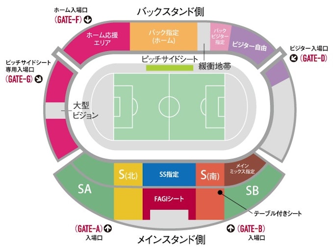 ※メインスタンド側の指定席化に伴う、SA指定席に拡張されたシーズンパスの販売エリアの詳細については下記をご確認ください。
