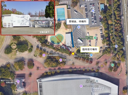 当日は多くの方の購入が予想されるため、ファジスクエアではなく、岡山県総合グラウンド内プール券売所にて、特設販売窓口を設置いたします。