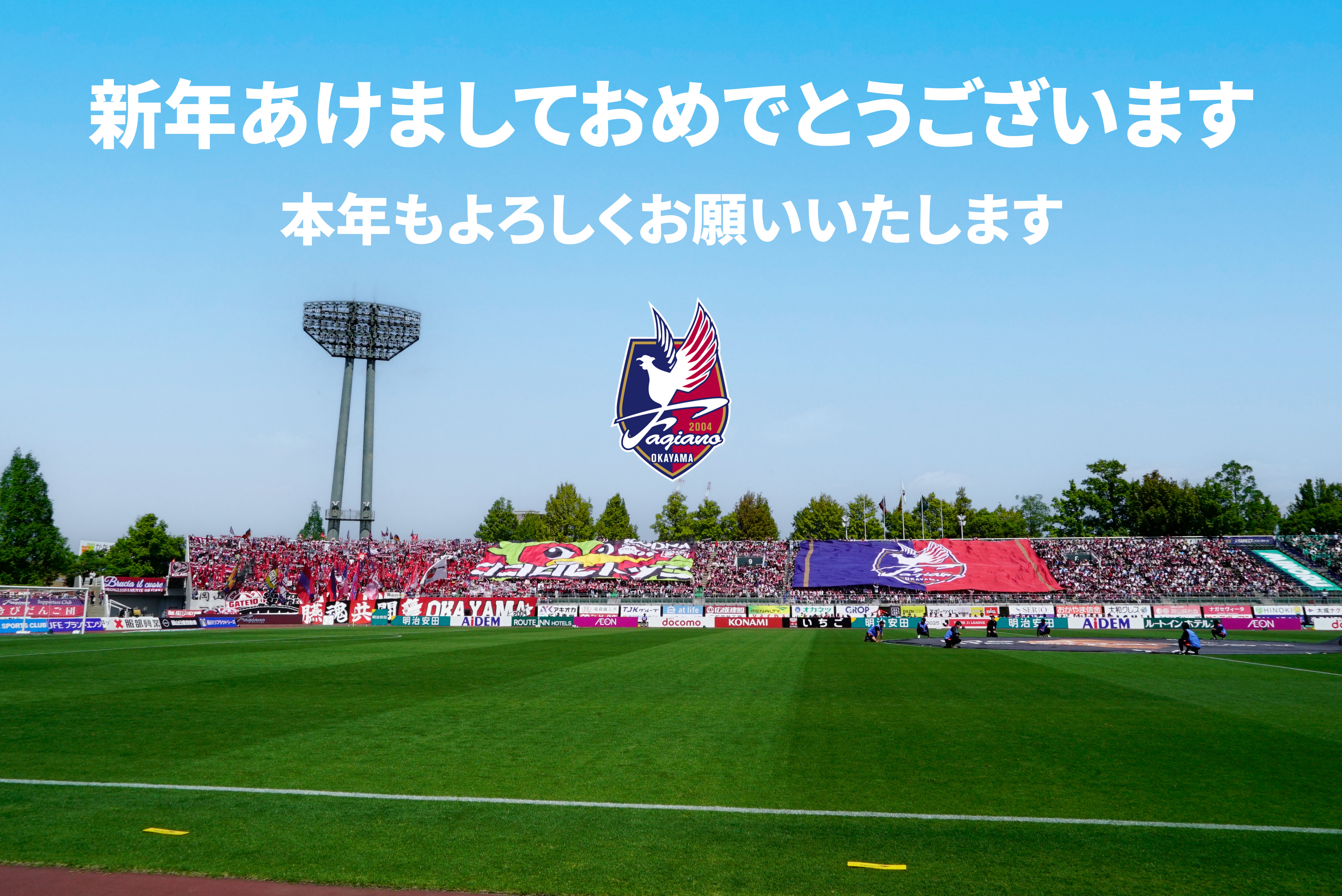 謹んで新春のお慶びを申し上げます。クラブとして初めてのJ1を戦った昨年も、多大なるご支援、ご声援を賜り厚く御礼申し上げます。株式会社設立20周年を迎える本年も、地域に根ざし、岡山の誇りとなるクラブとなるべく、クラブ一丸で努力してまいります。本年もどうぞよろしくお願いいたします。