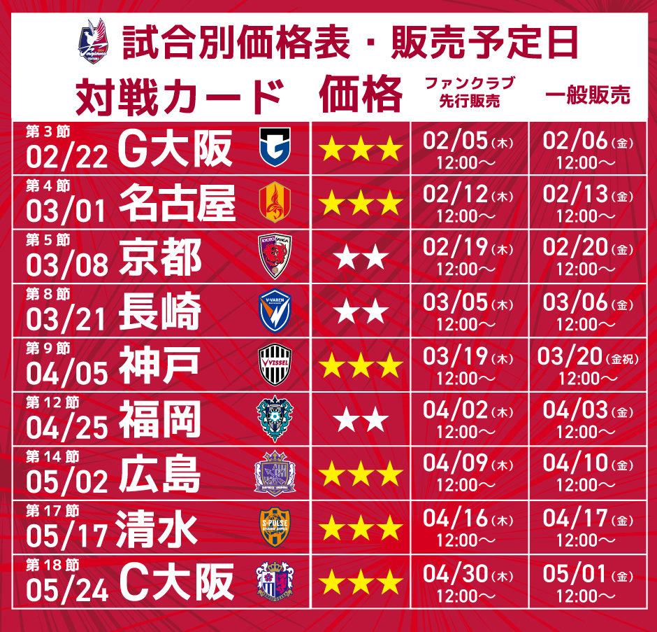 なお、各ビジター席の販売は、一般販売タイミングより開始となります。