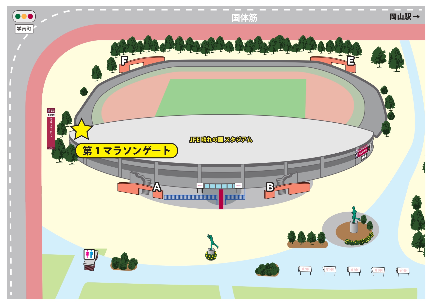 当選された方は、3月1日(日)のホームゲーム当日、キックオフの60分前(13:00)までに添付地図の「第1マラソンゲート前」にお集りください。
