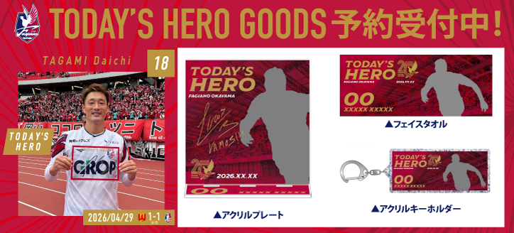 4月29日名古屋グランパス戦の勝利を記念し、田上 大地選手のTODAY'S HEROグッズの予約販売を開始いたします!